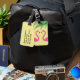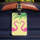 Den här tropiska bagagetaggen dekoreras med en fuchsia flamingos och handflatan löv på framsidan, och all din personliga information på baksidan skapar den perfekt för nästa semester.