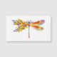 Artistiskt målad, blommigt drakon flödar i kontrasten mellan orange och lila med gult, ljus, blomning Kaliforniens vallmo och blåa vilda blommor på vit bakgrund.