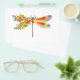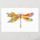 Artistiskt målad, blommigt drakon flödar i kontrasten mellan orange och lila med gult, ljus, blomning Kaliforniens vallmo och blåa vilda blommor på vit bakgrund.