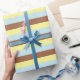 Gult för blek, Pastellblå och brun Rand Presentpapper