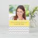 Fotokort för anpassningsbar av Studentfest i elegant och sofistikerad klarbent citrongult, grått och vit roligt och modern zigzags chevron rand mönster. Anpassa det här graderingskortet genom att lägga till året med studenten, ditt eget foto och din studentfest.