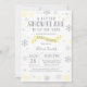 Inbjudan till Winter Baby Shower. Gult Snowflake. Bjud in barn eller flicka. Winter Helgdag Baby Shower Inbjudan. Gult och Grått Silver Snöflingor. Vit bakgrund. Om du vill göra ytterligare anpassningar klickar du på knappen "Anpassa" och användor verktyg som är utformat för att ändra mallen.