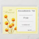En snyggt utmärkelse av modernt konsthandlingscertifikat med söt gult Billy Button inative Australian blommigt water gult image perfekt för att uppmuntra en ung konst student. Du kan göra egna skrivor. En underbar resurs för alla typer av klasslärare.