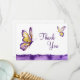Vattenfärgfjärilen tackar dig kort som är anpassadet för ditt brölloptema eller annan speciell händelse. Särdrag räcker målade vattenfärgfjärilar i färger av: lilan, violeten, lavendel, amethysten, gult och guld tonar. Alla aspekter av detta tackkortkort kan vara personligen.