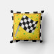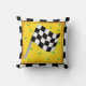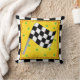Detta dekorativa flagga-piller är underbart för en bil eller motorcykel tävling fläkt eller någon som har vunnit en tävling, liten eller stor. Kudden anpassas med en svartvit och vågig flagga centrerad på en texturerad gults bakgrund med ett svart och vitt gräns. Ord i rött linje insidan av gräns och säg Tävling Fläkt, starta tävling och kontrollera flagga. Gröntens stjärnor är på bakgrunden. Konstruktionen finns på båda sidor av kudden och gör en underbar dekorativ accent för ett hem eller en kamper för fläkt av alla format av tävling, bil, cykel eller motorcykel.