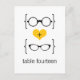 Quirky och chic Geeky Glasses Bröllop Bordsnummer Postcard med en gult med två par geeky-glasögon, ett manligt par och ett giftigt par som representerar stam och brud. Det här sofistikerade bord-kortet är perfekt för ditt nervösa bröllop! Enkel att anpassa, lägg bara till den personlig du väljer. Klicka på knappen "Anpassa" för att hitta ytterligare anpassningsalternativ.