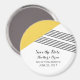 Modern och trendig Geometric Rand Spara datum magneter med en gult triangel och tunt strimlad accent. Den här enkla men ändå elegant-magneten är konfigurerad för att enkelt kunna anpassas med din bröllop-information. Hitta fler anpassningsalternativ genom att klicka på Anpassa.