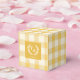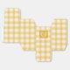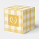 Anpassningsbar Monogram Favor Boxes, Gult Gingham Mönster Design. De här anpassningsbarna med gingham monogram-vapensköld är den perfekt som avslutar beröring för bröllop eller vid särskilda tillfällen. I sex olika färger lägger de till en munter av färg samtidigt som de behåller elegant och mångsidighet. De här rutorna passar perfekt för bröllop, klassisk vit firande eller evenemang med ett samordnat färg-tema och är ett snyggt för att presentera små gåvor eller söta slitningar. Anpassa med ditt monogram och datum för att skapa en meningsfull keepy för dina gäster.