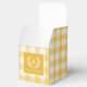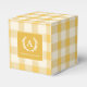 Anpassningsbar Monogram Favor Boxes, Gult Gingham Mönster Design. De här anpassningsbarna med gingham monogram-vapensköld är den perfekt som avslutar beröring för bröllop eller vid särskilda tillfällen. I sex olika färger lägger de till en munter av färg samtidigt som de behåller elegant och mångsidighet. De här rutorna passar perfekt för bröllop, klassisk vit firande eller evenemang med ett samordnat färg-tema och är ett snyggt för att presentera små gåvor eller söta slitningar. Anpassa med ditt monogram och datum för att skapa en meningsfull keepy för dina gäster.