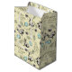 Den här söta för barn Glad påsk Namn Bunny Medium Gift Bag innehåller handritade illustrationer av knivar, löv och blommor i bläck mot en mjuk bakgrund av gulten. Anpassa med barnets namn.