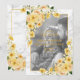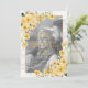 Söt och trendig, den här ljusa grått vattenfärgen vit blommigt-bröllop spara datum-kortdesignen med ditt favoritfoto (med ett svartvit filter som används, i enlighet med gult- och grått-temat) bakom ett faux vellum-överlägg. Anpassningsbarnas blommigt buketter i gult och champagne dekorerar hörnen. Kontaktdesigner för matchande produkter. Inbjudningskort för Elegant av upphovsrätt, alla höger reserverade.
