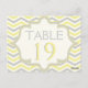 Modern gult grått chevron zigzag bröllop bordsnummer-vykort. En snyggt zig zag-design som använder det klassiska rand med contemporary och vintage ser ut på ett sätt. Det finns en ram i centrum. Du kan ändra bakgrund och text som färg väljer från över 200 färger i diagrammet Zazzle färg. perfekt för elegant, klass och lekfull design för alla säsonger i bröllop: vår, sommar, fall och vinter.