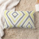 Denna 13-tums x 21-tums dekorativ kudde har en modern diamantdesign i butternut-gult och grått på vit bakgrund.