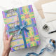 Färgfulla geometriska former mönster, anpassningsbarna gjorde grafik i framstående skuggor av gult, grönt, blått, lila och med ytterligare skuggor av burgudy, silver, grått, rosa, guld. trendiget för digitala konst i eleganten.