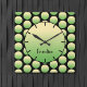 Gult Grönt Dot Black Script Namn Typography Fyrkantig Klocka