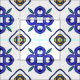 Ett handmålat mönster för gult, grönt och blåfärgad blommigt, inspirerat av gamla spansk plattor