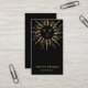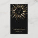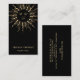 Ett högtidligt affärskort för eterisk eterisk med ett modernt guld-sol mandala med sol-strålar, och måne-faser, svart, med ett söt och modernt skript namnteckning typ. Lägg till titeln.