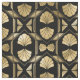 Den här vackra Art Deco-inspirerade designen visar gult guld-snäcka formade geometriska inslag på svart bakgrund.
