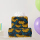 Gult konfektur på mörk blått presentpapper