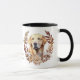 En söt höstandekrans i tonerna av kanelbrunt, brunt och kräm omger bilden av en gult Labrador Retriever Hund. Bilden skrivs ut två gånger på mugg, med anpassningsbarna mellan dem.