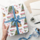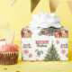 Det upprepade mönster på detta papper för julomslagning innehåller en bild av en gult labrador Retriever-valpen sitta i ett torkat basket fyllt med blommor. Basket har en röd båge och sitter bredvid Helgdag träd. Stiliserad röd text och grönt säger GOD JUL", och din egen namnteckning finns i två fält för att du ska kunna anpassa den. Andra bilder som ingår i mönster är rött dekorativt snöflingor, polkagrisar och en peppermint lolly pop.