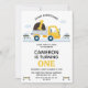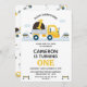 Gult Lastbil dumpar allt första födelsedag Inbjudningar