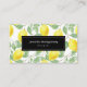 Modern professionell affärskort designade med gult citroner och grönt löv, i ett upprepande mönster.