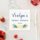 Lägg till egna uppgifter för att skapa napkins i anpassningsbar party som är perfekt för möhippor i vår och sommar och andra speciella evenemang. Blåskript och spådomar för utskrift av party-informationen medan ett accent av citroner av gult med mynta grönt och royal blå flora och bladaccenter i ge ger dessa party en roligt och ett nytt utseende. All text på dessa pappra blöjor är redo som ska anpassas med din egen information.