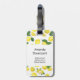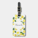 En bagagetagg med ett sött mönster av citroner av gult med grönt löv och färskklippta citronskivor.