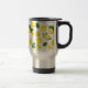 En resemugg med ett sött mönster av gult citroner med grönt löv och färsk citronskivor.