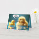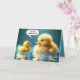 Ett flytande duckande och en gult gummi anka flyter sida vid sida på en lugn, som skakar blå yta för att få gammal födelsedag. All text kan ändras.