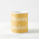 Gult med morgonsolsken i vit text kaffemugg
