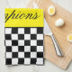 Gult med svartvit kontroll kökshandduk
