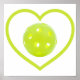 Perfekt för pickleball älskare i ditt liv. Om man känner någon som är besatt av idrotten är det en underbar gåva till dem. Det är en gult-pickle boll i ett hjärta som visar kärlek för picklebollsporten.