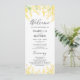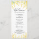 Gult Mimosa Vår Blommigt Bröllop Flat Program. Elegant gult mimosafloger blommigt bröllopsprogram med vackert handmålat vattenfärgat silver wattle mimosa bouquets och gräns med modernt kalligrafskript. Matchande objekt är tillgängliga.