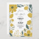 En palett i gult färg sätter bröllop-papperet vid sidan av resten. Utformningen har en modern blommigt och du kan anpassa hela texten. Koordineringsposter tillgängliga.