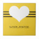 Söt och charmerande Modern Heart Tile med en gult bakgrund och ett sött hjärta och stripe gräns. Den här söta och giftiga plattan lägger till stil till vilken dekoration som helst. Anpassa med den text du väljer. Klicka på Anpassa om du vill söka efter ytterligare anpassningsalternativ.