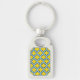 Gult och Baby blue trellis, Lattice, Quatrefoil Rektangulärt Silverfärgad Nyckelring