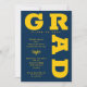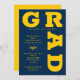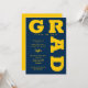 KLASSIFICERING i fetstil gult guld som skriver kurvor runt kant om dessa inbjudningar till studentfesten med blå bakgrund. MATCHING-artiklar och mycket FÄRG förgjort för dig i vår samling på PartyInvitationShop.com