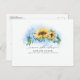 Gult och Dusty Blue-Blommigt Spara datumfoto Meddelande Vykort