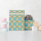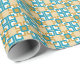 Gult- och tealförreglande rutor skapar ett nära mönster.