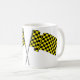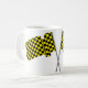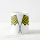 Vrid gult och flaggor för svart tävla. Den här designen ser ut att gälla i Mugg