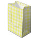 Den här söt presentpåsen, i en gult-och-vit-gingham mönster, kommer säkert att göra din mottagares dag ljusare! Underbar för duschar, firande eller tillfälle!