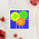 Gult, orange och grönt picklebullar på blå hotell pappersservett