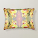 Den vackra mönster på denna accent Pillow är gjord av ett originalfoto av gultens orkidéer i eftermiddagens solljus. Fläskblommorna har blek gulter med rött till lila. En mörk grönt vind är att det är uppåt genom blommornas centrum. Pastellbakgrunden består av skuggor av rosa som blandas i blekens grönt. Några ljust grönt löv av en enda växt kan ses i ett hörn. När fotot kombineras för att skapa mönster blir blommigten en orkidé med rosa glöd av eftermiddagens sol i mitten.
