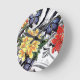 Gult Peony och Butterfly Tattoo Design Rund Klocka