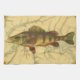 Detta illustrerar en konstnärlig bild av en gult färsk fisk. Bakgrunden visningar en vintage geografiskt karta i ljusbeige färg. Den bruna ram liknar den gamla mönster med gult-röda blommor i kant. Ett underbart tillägg till din fiskeinsamling!