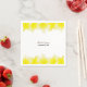 Den här designen har gult frangipani-/plumeriablommor. En tropisk design som är elegant utformad med gult frangipani-blommor.Bryggens och brudgummens namn betonas med ett brunaktigt färg som väljs från mitten av plumeriablomman. Dessa populära tropiska hawaiiska blommor är idealiska för ett elegant- och turistbröllop. Tropical bröllop napkin-design med modernt inslag. Det finns också möjlighet att matcha bröllopsinbjudningar och andra artiklar i kontorsartiklar.