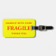 Bagagetagg med bräcklig, Handle med försiktighet, tack. Röd text på gultens bakgrund. Anpassade. Anpassa med namn och adress-information med hjälp av de enkla mallarna. Teckensnitt färg, stil och storlekt teckensnitt är anpassade.