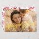 Koppla Gulten för allt fotokort med Fantastisk-Funky. Ditt foto på baksidan eller den aktuella röda blommigten som stöder mönster. Söt Calligraphy-skript stil. Lettrande stil. Stor fotodesign. Lycklig, festlig design.